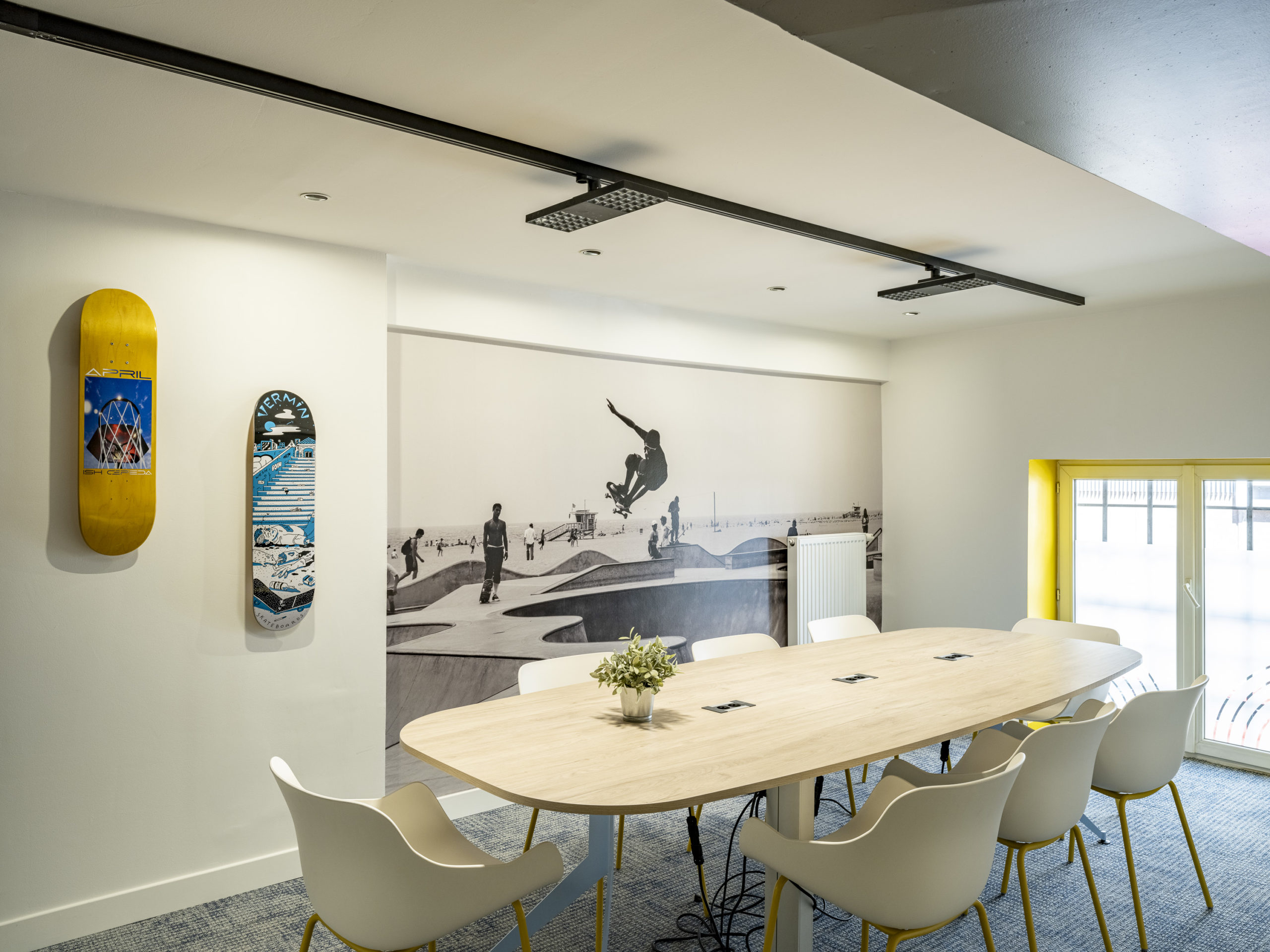 La lumière naturelle est essentielle pour réguler notre rythme biologique et réduire la fatigue visuelle. Installer les postes de travail près des fenêtres permet non seulement de profiter de la lumière du jour, mais aussi de créer un environnement agréable et stimulant. Attention toutefois aux reflets sur les écrans : un store ou un rideau peut être la solution idéale pour moduler l’intensité.